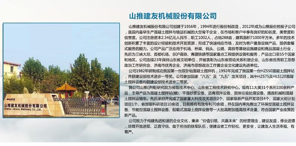 主營(yíng)產(chǎn)品:混凝土攪拌站,混凝土攪拌運(yùn)輸設(shè)備,干混砂漿攪拌設(shè)備,瀝青攪拌設(shè)備,混凝土攪拌配件,