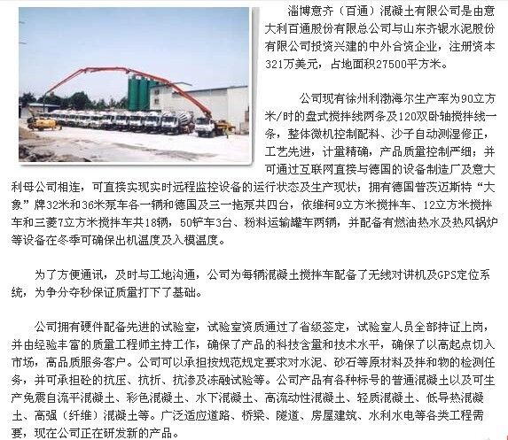 淄博意齊(百通)混凝土有限公司公司簡介,關(guān)于淄博意齊(百通)混凝土有限公司