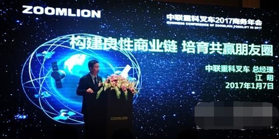 當(dāng)日,江明總經(jīng)理在大會(huì)上表示,中聯(lián)重科工業(yè)車輛已經(jīng)搭建了良好的商業(yè)生態(tài)鏈,并建立了以“誠(chéng)信、共贏、協(xié)同、競(jìng)爭(zhēng)”為商業(yè)觀的朋友圈。2017年中聯(lián)叉車的經(jīng)營(yíng)定位是:進(jìn)一步夯實(shí)產(chǎn)品、渠道基礎(chǔ)。注重規(guī)模與效益之間的平衡,強(qiáng)化商業(yè)鏈的良性運(yùn)營(yíng)。國(guó)內(nèi)市場(chǎng)在風(fēng)險(xiǎn)可控的前提下,注重培育、扶持“朋友圈”代理和客戶,穩(wěn)固市場(chǎng)地位。