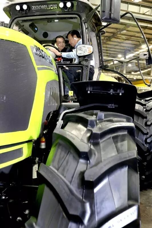 李克強(qiáng)總理登上“一人高的輪子、深耕可達(dá)半米”的中聯(lián)重科大馬力拖拉機(jī)