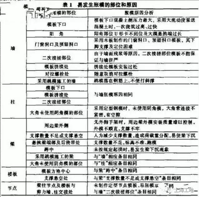 易發(fā)生脹模的部位和原因見下表: