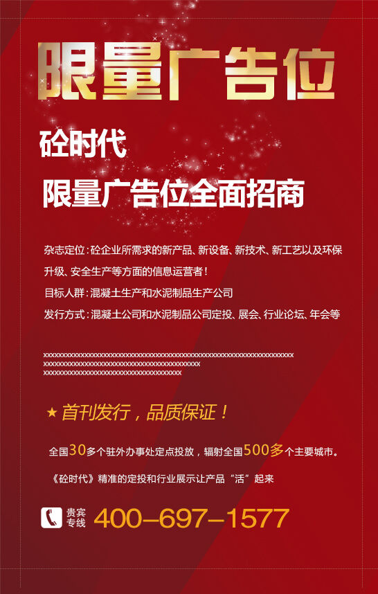 現(xiàn)《砼時代》,廣告位火熱招商中,我們誠摯邀請你的參與!