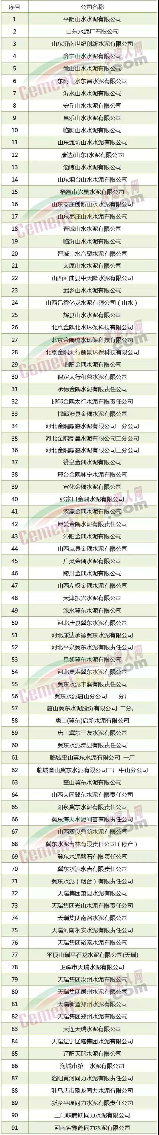 京津冀及周邊部分水泥企業(yè)名單