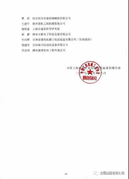 在11月9日召開的中國工程機械工業(yè)協(xié)會建筑起重機械分會年會上,以中工機協(xié)【2017】建起字11號文件公布了《關于建筑起重機械行業(yè)首批18名專家的聘用決定》,聘用首批18名專家為建筑起重機械行業(yè)專家,方圓集團副總工程師吳明臣名列其中。