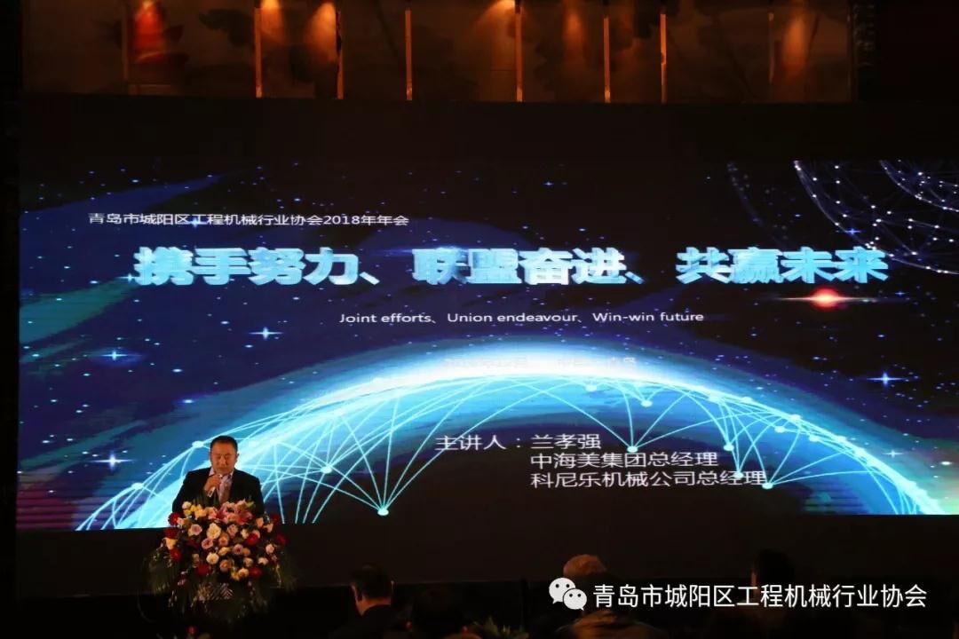 時(shí)光荏苒,歲月如梭,傲雪凌霜,群英薈萃。伴隨著深冬來臨的腳步,跟隨著“改革開放四十周年”的勝利曙光,踏上新的征程!今天,我們相聚一堂,共謀發(fā)展。迎來了青島市城陽區(qū)工程機(jī)械行業(yè)協(xié)會(huì)的第二次年度盛會(huì)!