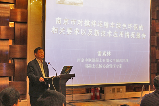 南京中聯(lián)混凝土有限公司副總經理、混凝土機械協(xié)會資深專家雷素林先生作了《南京市對攪拌運輸車綠色環(huán)保的相關要求以及新技術應用情況報告》的主題演講,從南京環(huán)保和攪拌車治理過程中所遇到的問題提出了攪拌車在綠色環(huán)保和新技術應用方面的以下幾點建議: