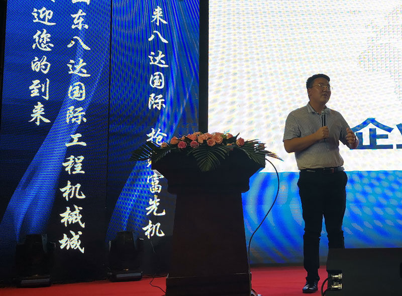 山東八達(dá)國(guó)際工程機(jī)械有限公司總經(jīng)理——于瑞杰致辭。于瑞杰總經(jīng)理表示山東八達(dá)國(guó)際工程機(jī)械始終秉承“工程建設(shè)生生不息,工程機(jī)械大有可為”的堅(jiān)定信念。全力打造國(guó)內(nèi)成交量最大的工程機(jī)械城。并通過(guò)資源、信息和客戶集中,實(shí)現(xiàn)貨比三家。讓客戶享受一站式服務(wù)得到全方位保障。我們希望通過(guò)此次大會(huì),把更多的工程機(jī)械和配件結(jié)合起來(lái),把更多的買家請(qǐng)進(jìn)來(lái),通過(guò)公平、公正、公開的交易,讓成交更快捷、更容易、更方便!