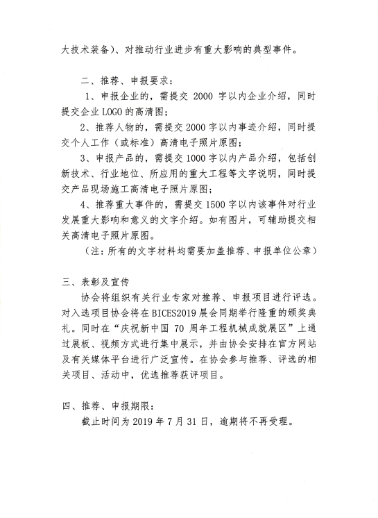 關于開展BICES慶祝建國70周年工程機械系列行業(yè)評選的通知