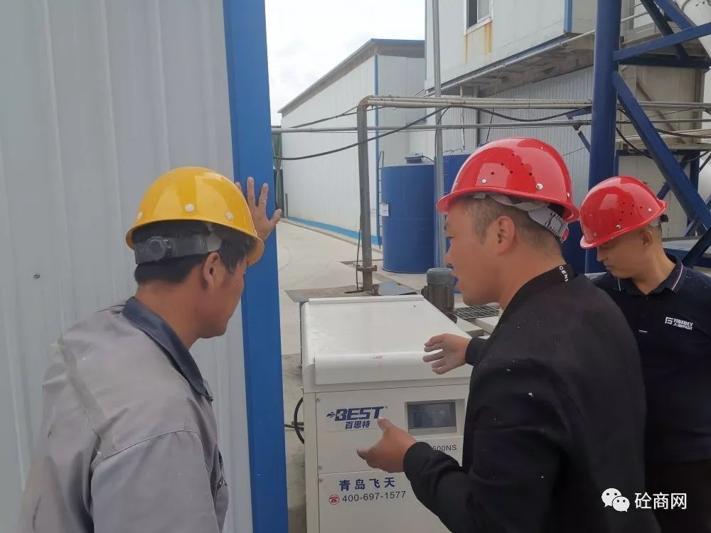 到了青島某攪拌站后,其攪拌站負責人攜站長親自到現(xiàn)場觀看試機效果。