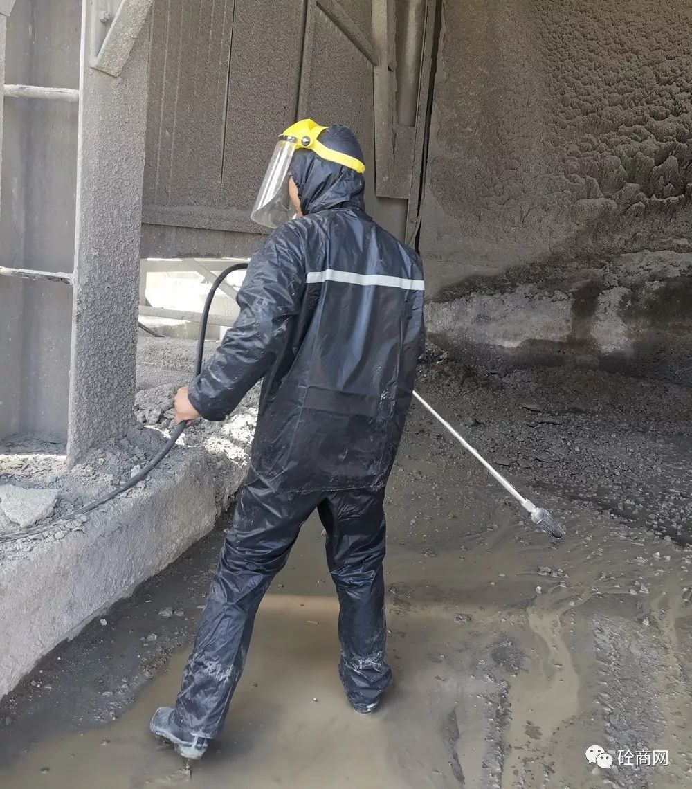 在楊技術員給站上工作人員進行初步講解指導后,首先對兩年沒有清理過的水泥倉支腿下方累積的混凝土進行了處理。那么,效果究竟怎么樣呢?具體視頻關注“砼商網(wǎng)”公眾號,回復“高壓清洗機”即可獲得技術員正準備打攪拌機主樓容易噴濺混凝土的地方時該攪拌站站長說道,這可得有兩年沒清理過的混凝土結(jié)塊,十幾公分厚呀!你們這高壓清洗機能打掉嗎?這是混凝土??!這么長時間了,還這么厚,打不下去怎么辦?正在小編心里打鼓的時候,楊技術員說道,沒問題,放心吧!