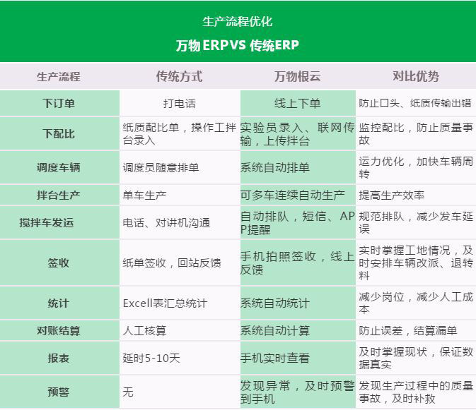 萬物ERP依托工業(yè)互聯(lián)網(wǎng)平臺(tái)技術(shù),將攪拌站大部分工作人員從攪拌站現(xiàn)場解放出來,在總部、在工地、在家中,不分白天黑夜,均能參與生產(chǎn)管理。