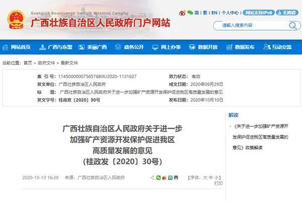 近日,廣西壯族自治區(qū)人民政府發(fā)布《關(guān)于進(jìn)一步加強(qiáng)礦產(chǎn)資源開發(fā)保護(hù)促進(jìn)我區(qū)高質(zhì)量發(fā)展的意見(jiàn)》,針對(duì)自治區(qū)礦業(yè)開發(fā)布局不合理、規(guī)模化水平不高、粗放利用和生態(tài)環(huán)境保護(hù)不到位等問(wèn)題提出若干建議,努力加強(qiáng)礦產(chǎn)資源開發(fā)保護(hù),提高礦產(chǎn)資源有序開發(fā)和綜合利用水平。