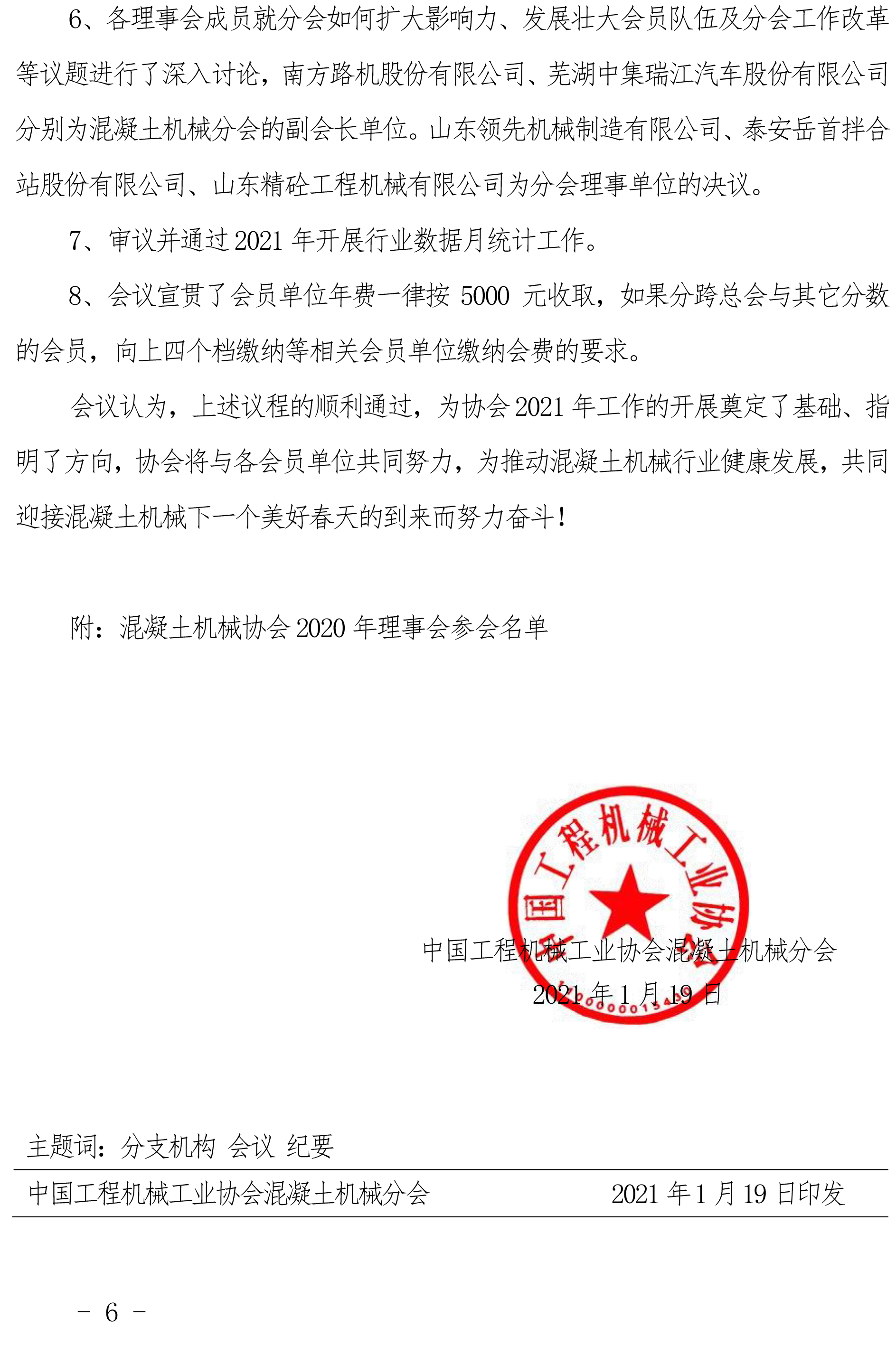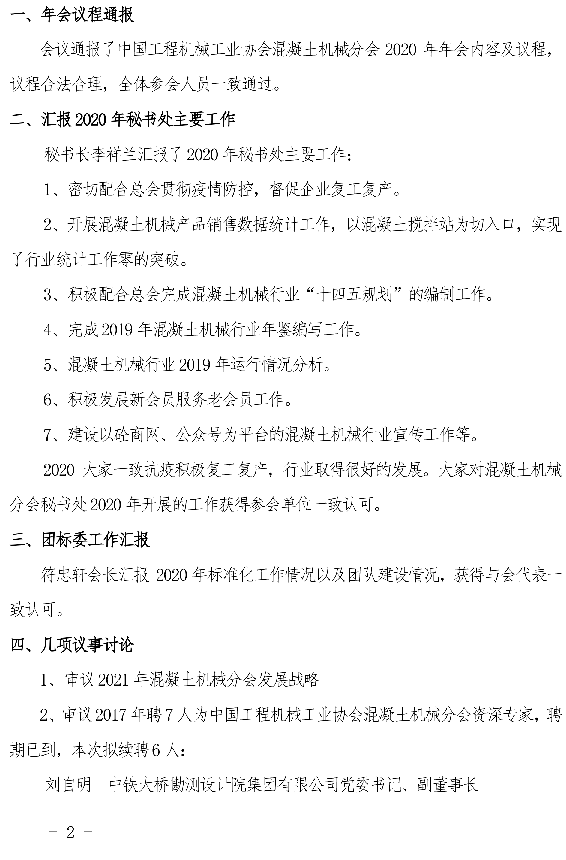 中國工程機械工業(yè)協(xié)會混凝土機械分會 2020 年理事會議紀(jì)要