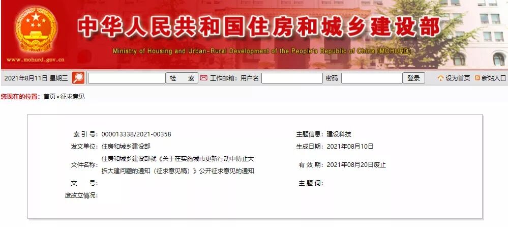為深入貫徹黨的十九屆五中全會(huì)精神和“十四五”規(guī)劃綱要部署要求,指導(dǎo)各地積極穩(wěn)妥實(shí)施城市更新行動(dòng),防止沿用過度房地產(chǎn)化的開發(fā)建設(shè)方式,大拆大建,急功近利等問題,我部研究起草了《關(guān)于在實(shí)施城市更新行動(dòng)中防止大拆大建問題的通知》,現(xiàn)向社會(huì)公開征求意見。公眾可在2021年8月20日前,通過以下途徑和方式提出意見: