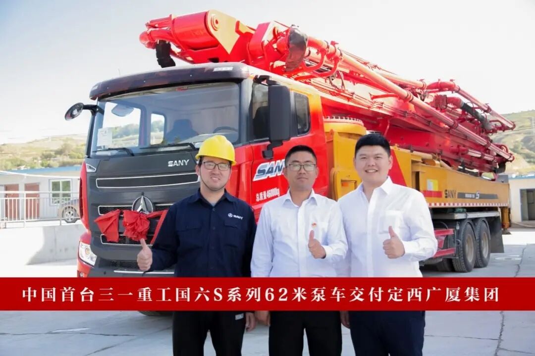 2021年8月,定西廣廈集團(tuán)采購(gòu)國(guó)內(nèi)首臺(tái)三一國(guó)六S系列62米泵車。