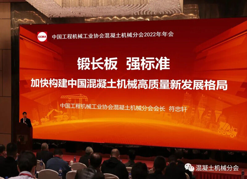 中國(guó)工程機(jī)械工業(yè)協(xié)會(huì)混凝土機(jī)械分會(huì)符忠軒會(huì)長(zhǎng)以《鍛長(zhǎng)板、強(qiáng)標(biāo)準(zhǔn),加快構(gòu)造中國(guó)混凝土機(jī)械高質(zhì)量新發(fā)展格局》為題做精彩演講。正式匯報(bào)前會(huì)長(zhǎng)講到,責(zé)任激發(fā)智慧,使命勃發(fā)激情;精神催生業(yè)績(jī),拼搏彰顯風(fēng)采。
