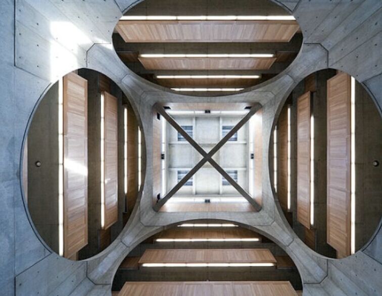 坎姆貝爾的拱頂覆蓋的是鉛板,康認(rèn)為鉛板具有和混凝土、鈣華石相通的材料特征。隨著時(shí)間的延伸鉛板會(huì)逐漸變成自然的質(zhì)感,在陽光的作用下有雪的反光效果。這些材料和諧的組織在一起,反映出康對材料自然本質(zhì)的熱衷和追求。