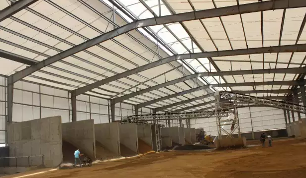 1.孫總,你好!請問這個(gè)料倉看著很漂亮而且這個(gè)材質(zhì)比較特殊您給大家介紹一下吧。孫總:我們這個(gè)料倉應(yīng)該是青島市最大,環(huán)保型的料倉;它采用的的全封閉式的結(jié)構(gòu),大大的降低的粉塵物的污染。而且我們這個(gè)料倉采用的沙灘帳篷的材質(zhì),是一種比較高級的尼龍纖維,它的壽命比彩鋼板高出2倍左右,而且它的采光非常好,你可以看到料倉里面的光線是非常充足的,我們是四面封閉,也滿足了環(huán)保的需求。