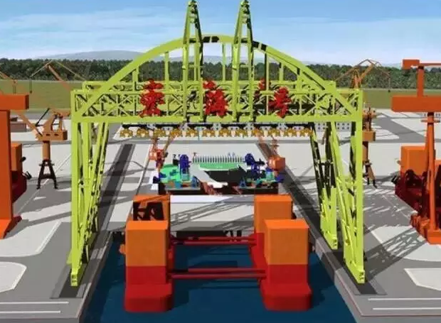 “宏?!碧?hào)22000噸起重機(jī),主要用于海上石油鉆井平臺(tái)整體的從陸地運(yùn)到海上,將以往“化整為零”的建造方式變?yōu)椤罢嬲 ?。借?2000噸起重能力的“大家伙”,把拼裝好的海洋油氣鉆井平臺(tái)從陸地上的專用拼裝胎位上提起來(lái),直接放到海上去。設(shè)備總體高度150米,提升高度最高為65米,相當(dāng)于把重量為500節(jié)高鐵車廂或20層樓高的超重、超大型物件提升起來(lái)并行走。主體采用桁架式結(jié)構(gòu)、拱形外觀、多吊點(diǎn)雙吊梁承載,跨度124.3米,宏海號(hào)總重14800噸,相當(dāng)于兩個(gè)埃菲爾鐵塔的重量?!伴_下門,快遞到了啊,你的鉆井平臺(tái)~”
