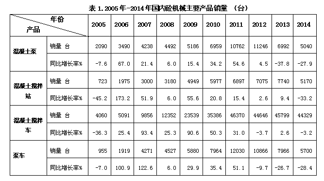 1)2014年中國砼機械主要設(shè)備保有量