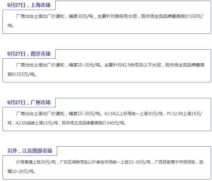 水泥方面,東北地區(qū)即將進入往年慣例長時間的停窯限產(chǎn)階段,避免產(chǎn)能過剩,穩(wěn)定現(xiàn)有價格,因此短期內(nèi)價格波動的可能性不大。華北地區(qū)行情持續(xù)升溫,水泥銷售情況良好,再加上停窯措施落實到位。從現(xiàn)階段市場進度來看,預計10月中上旬水泥價格進行上調(diào)。