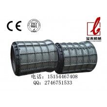懸置在機架上的輥軸穿過管模,在電機驅(qū)動下,傳動軸帶動輥軸以規(guī)定速度旋轉(zhuǎn)。在輥軸與管模兩端擋圈摩擦力作用下,管模與輥軸作同方向旋轉(zhuǎn)。此時,由人工或機械投入的混凝土拌合物在旋轉(zhuǎn)離心力作用下鋪在管模內(nèi)壁,當混凝土拌合物料層厚度超過擋圈高度后,即開始受到輥軸與管模內(nèi)擠壓。隨著料層厚度的增加,輥軸對混凝土的壓力越大,并逐漸使混凝土拌合物達到預期的密實度。在輥壓成型過程中,混凝土拌合物除受到輥壓力作用外,還同時受到管模旋轉(zhuǎn)造成的離心力和管模由于投料均勻性影響而形成的自身振動力的作用。輥壓成形原理即是通過上述工藝過程和三種力的組合作用(其中主要是輥壓力),使混凝土拌合物密實而形成管模
