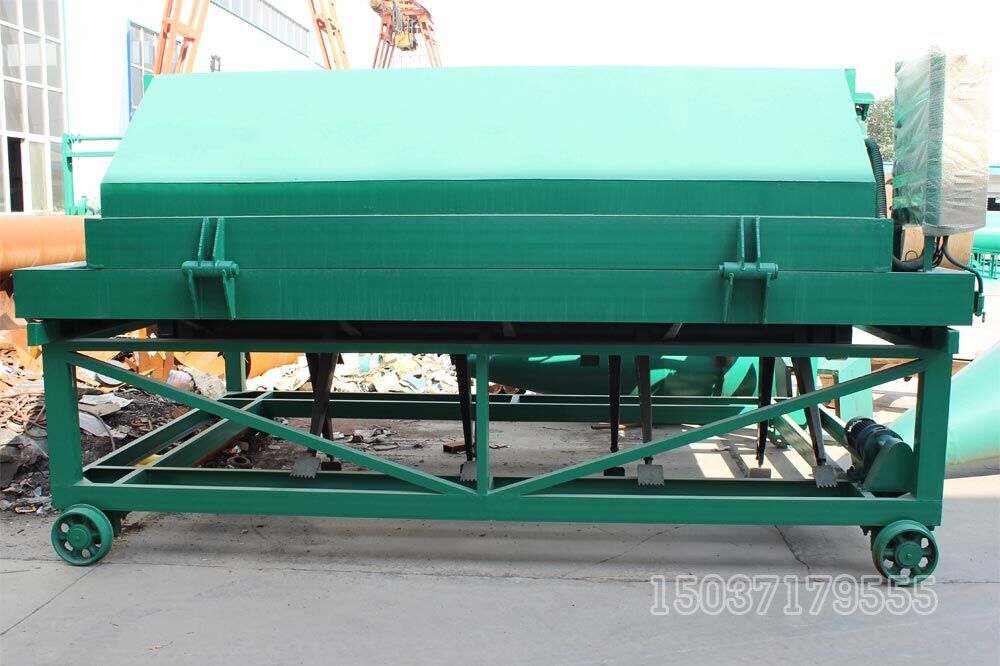 1.槽式翻拋機翻堆跨度可以達到4-12米,發(fā)酵周期15天左右。發(fā)酵槽長度視情況而定??梢悦刻爝M料口投料,另一頭出料。每天投料,每天出料加工。當(dāng)翻拋機翻拋完成需換翻拋段時,可升起攪龍將設(shè)備快速運行至翻拋段。