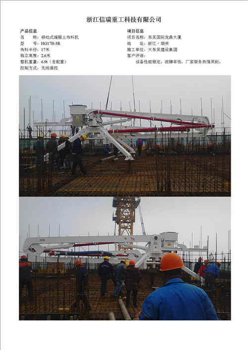 歸屬行業(yè):信瑞重工HG17B-3R移動式混凝土布料機
