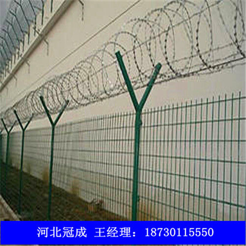 監(jiān)獄圍欄網(wǎng)可平地安裝,也可在圍墻上二次安裝,有效防止攀逃。直刺式刺網(wǎng)隔離帶,是用柱體和普通刺繩橫、縱、斜向交叉綁定成刺網(wǎng)隔離帶。主要用于特殊地帶、軍事基地圈護(hù)、溝壕圈護(hù),安裝簡(jiǎn)易,經(jīng)濟(jì)耐用?! ?