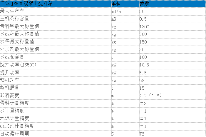 連體js500混凝土攪拌站技術參數(shù)