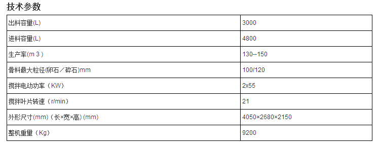 JS3000強(qiáng)制式雙臥軸混凝土攪拌機(jī)每次出料為3立方米,也稱為3方混凝土攪拌機(jī),循環(huán)周期是60S,180攪拌站主機(jī)使用的就是該機(jī)。