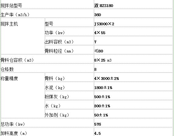 雙HZS180大型混凝土攪拌站技術(shù)參數(shù)