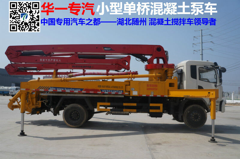 湖北華一專(zhuān)用汽車(chē)有限公司生產(chǎn)的小型泵車(chē)是國(guó)內(nèi)首創(chuàng)小型混凝土臂架泵車(chē),是目前國(guó)內(nèi)體積小、一車(chē)兩用(高壓車(chē)載泵送、低壓泵送臂架布料)最具創(chuàng)意和經(jīng)濟(jì)效益的臂架泵車(chē),以機(jī)械化作業(yè),代替勞動(dòng)力(能替代40多個(gè)勞動(dòng)力),填充農(nóng)、鄉(xiāng)、城、鎮(zhèn)建筑混凝土輸送的空白,適用于國(guó)家政策城鄉(xiāng)一體化建設(shè)不可缺少的專(zhuān)用車(chē)輛、具有靈活、方便、高效、經(jīng)濟(jì)、智能的優(yōu)點(diǎn),小型混凝土臂架泵車(chē)在湖北具有代表性。