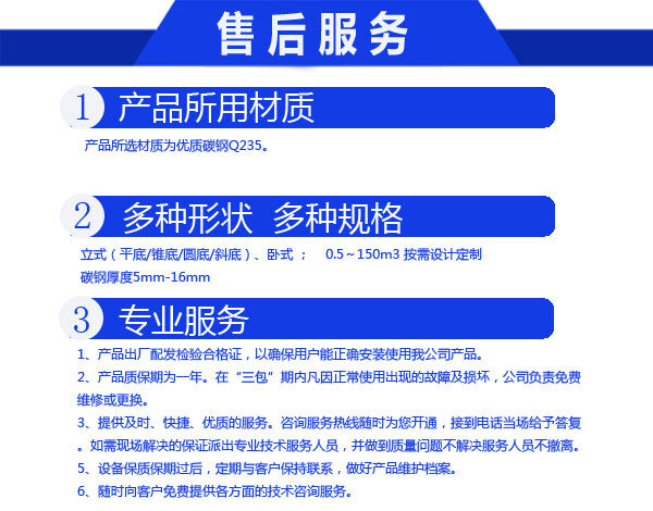 我們公司并可根據(jù)客戶(hù)要求制作來(lái)圖來(lái)料加工防腐儲(chǔ)罐。工程質(zhì)量達(dá)到經(jīng)濟(jì)、合理、可靠、可信和優(yōu)良的標(biāo)準(zhǔn)。讓您滿(mǎn)意是我們的追求。為您服務(wù)是我們的職責(zé)?!百|(zhì)量是企業(yè)生存的命脈 ;信譽(yù)是廠家發(fā)展的階梯。” 讓利客戶(hù)、規(guī)格生產(chǎn)、成本降低、統(tǒng)一銷(xiāo)售。歡迎廣大客戶(hù)來(lái)函、來(lái)電、來(lái)樣咨詢(xún)訂購(gòu),讓您買(mǎi)的放心用得安心,與您攜手共創(chuàng)輝煌。