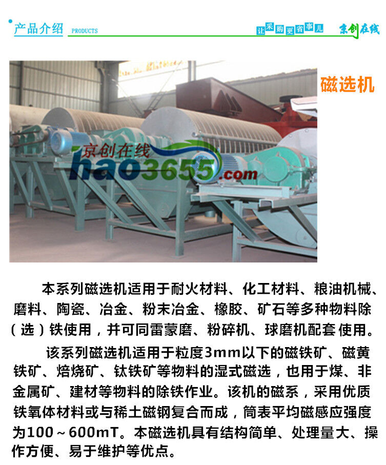 (5)、排出磁選機(jī)內(nèi)的磁性礦物。并周期地重復(fù)上述程序。磁選過(guò)程順序控制由順序控制器(見選礦設(shè)備順序控制器)實(shí)現(xiàn),根據(jù)工藝要求的控制順序預(yù)先編程,并存入順序控制器內(nèi)。