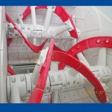 電動(dòng)潤(rùn)滑泵通過(guò)四個(gè)泵芯分別向四個(gè)軸端供油。油脂壓力高,檢修方便,粘度大且密封可靠,同時(shí)耗油量小,可有效減少油脂對(duì)混凝土的污染。