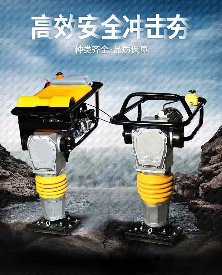 沖擊夯是指利用沖擊和沖擊震動作用分層夯實回填土的壓實機械。分電動沖擊夯、汽油沖擊夯和震動沖擊夯等。該產(chǎn)品具有設(shè)計先進、結(jié)構(gòu)緊湊、性能穩(wěn)定、