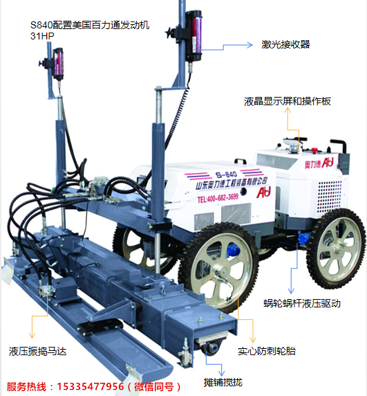 山東奧力德生產(chǎn)的新款小型混凝土激光攤鋪整平機(jī)性能特點: