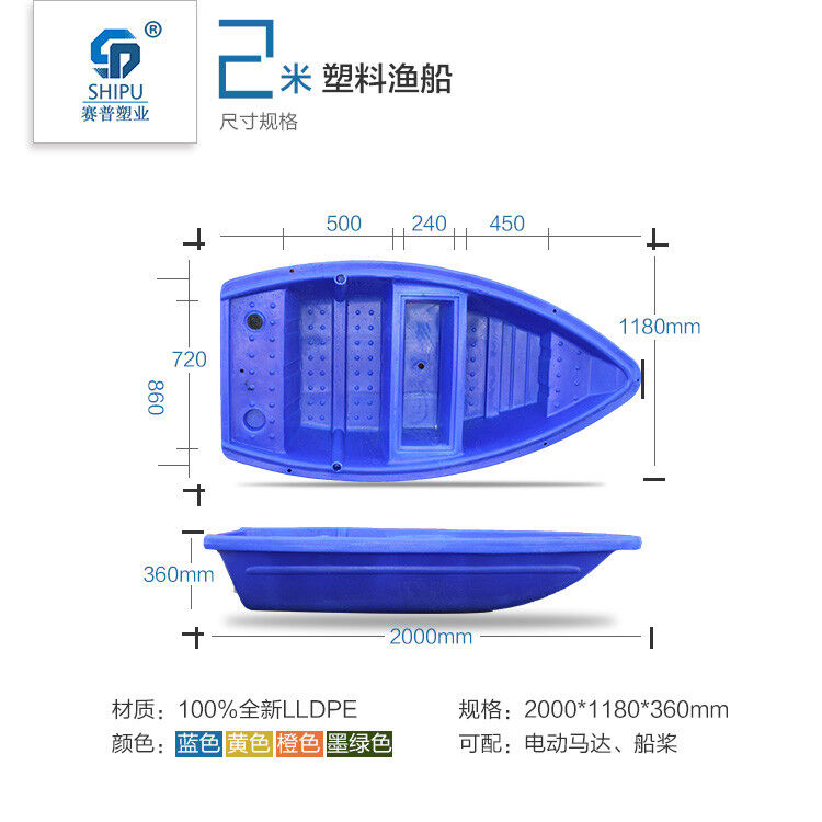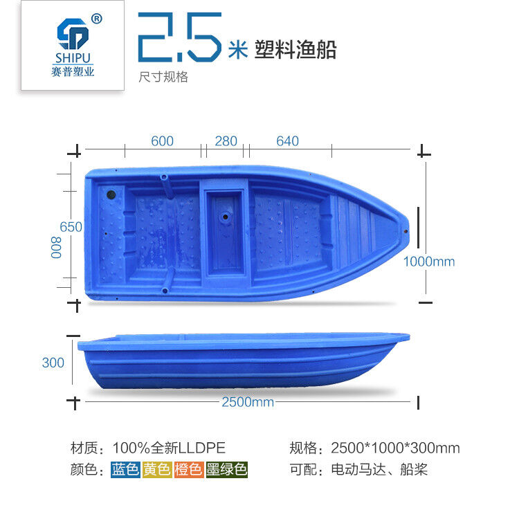 塑料漁船是我公司為漁業(yè)養(yǎng)殖戶開發(fā)的一款既環(huán)保又經(jīng)濟(jì)的新型滾塑產(chǎn)品。塑料漁船采用國外先進(jìn)的滾塑工藝整體加工一次成型,產(chǎn)品設(shè)計(jì)以安全、環(huán)保為基礎(chǔ),是替代玻璃鋼船的理想產(chǎn)品。適用于漁業(yè)養(yǎng)殖,市政河道護(hù)理,農(nóng)家樂,水上娛樂設(shè)施等。船體可裝電動馬達(dá),可以配船槳,配頂棚改裝為景觀船!