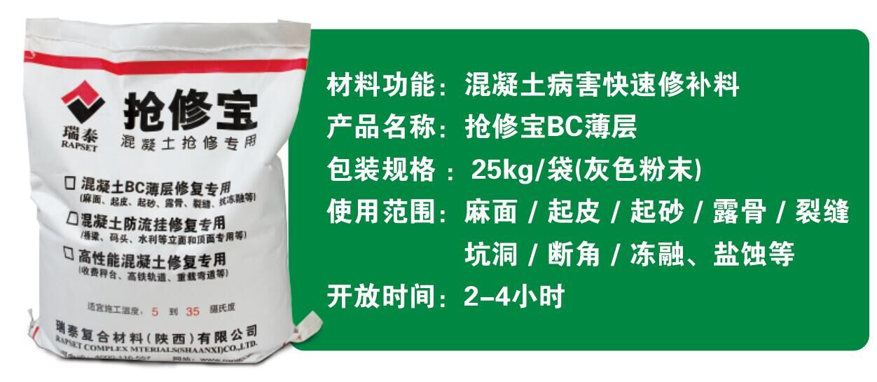 如果遇到水泥路面破損不好修復(fù)的問題,并且養(yǎng)護工作人員對于施工工藝技術(shù)操作沒有任何問題的話,那么可以使用西安瑞泰搶修寶系列材料來解決,因為搶修寶系列材料擁有自身強度高,粘結(jié)力強,抗折抗壓強度過硬,耐久性強等優(yōu)勢,而且材料的色差小,修補后混凝土基本可以保持和原混凝土路面顏色一致,不會影響路面的整體外觀,堪稱修補水泥路面不規(guī)則病害利器。