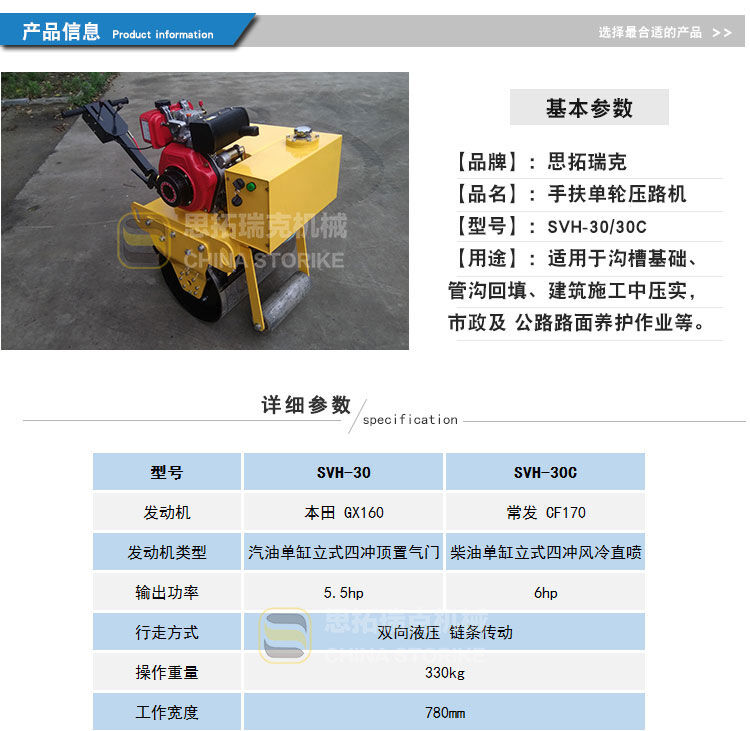 山東思拓瑞克SVH30 小型手扶式單鋼輪壓路機(jī)
