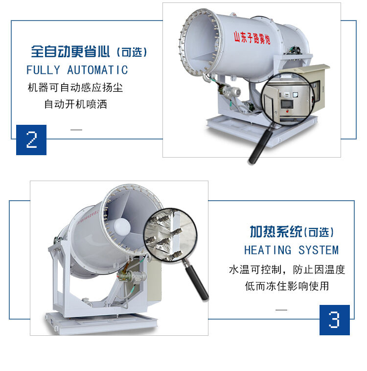 2.霧炮機是全自動的還是手動型的,如果是全自動的價格肯定會高出一些,全自動霧炮機可以實現(xiàn)遠程遙控,配備觸摸屏,遙控器,粉塵傳感器,能定時定量噴霧,