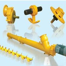 旋轉(zhuǎn)的螺旋葉片將物料推移而進(jìn)行螺旋輸送機(jī)輸送,使物料不與螺旋輸送機(jī)葉片一起旋轉(zhuǎn)的力是物料自身重量和螺旋輸送機(jī)機(jī)殼對物料的摩擦阻力。螺旋輸送機(jī)旋轉(zhuǎn)軸上焊的螺旋葉片,葉片的面型根據(jù)輸送物料的不同有實體面型、帶式面型、葉片面型等型式。螺旋輸送機(jī)的螺旋軸在物料運(yùn)動方向的終端有止推軸承以隨物料給螺旋的軸向反力,在機(jī)長較長時,應(yīng)加中間吊掛軸承。