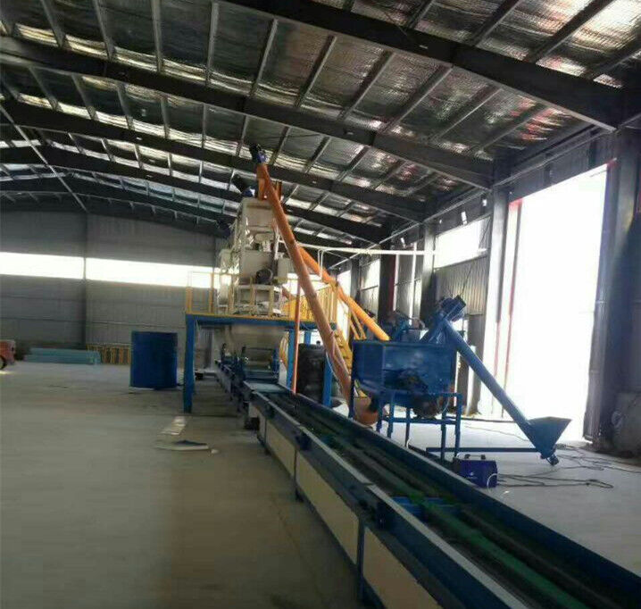 1、自動化程度高:整條生產(chǎn)線采用PLC電腦自動化控制,實(shí)現(xiàn)了自動上模板、自動涂脫模劑、自動配料、自動上漿、自動鋪布、自動攤平、自動分切、自動復(fù)壓、自動接板等自動化功能。