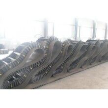 我們可以生產(chǎn)普通一般的大傾角裙邊輸送帶,是由基帶,擋邊,隔板三部分組成,三者共同作用,幫助物料提升到指定高度?;鶐?,擋邊,隔板是通過(guò)二次硫化的方式硫化到一起的,十分的牢固。另外為了能夠在物料大批量運(yùn)輸下隔板的穩(wěn)固,我們還在擋邊與隔板中間加入穩(wěn)固螺絲,這個(gè)我們是不收取任何費(fèi)用的。