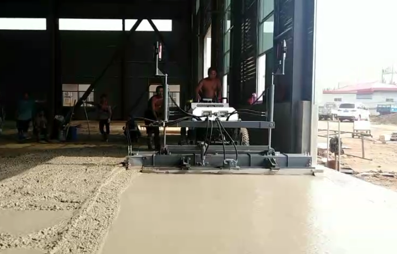 由刮板、振動(dòng)器、振動(dòng)板、絞龍等部件組成,將攪拌、找平、震平、振搗,等多道工序整合到一起,由機(jī)器一次性完成。提高效率,節(jié)省人工。