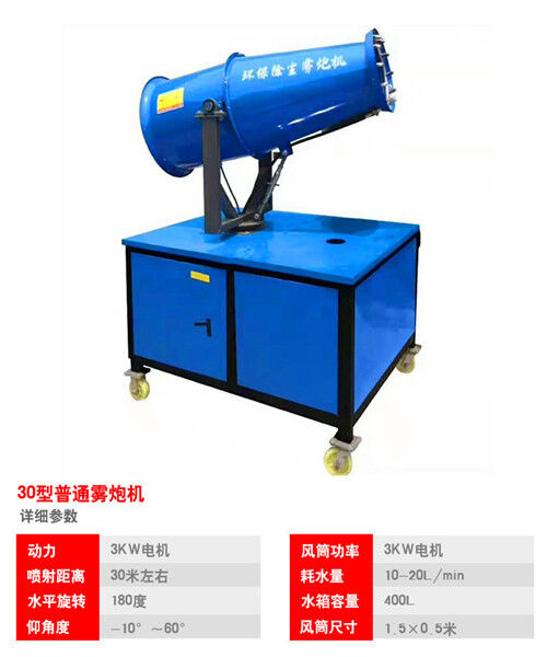 5、 噴霧時(shí)可按照需求進(jìn)行水平噴射角度和俯仰角度調(diào)整,水平扭轉(zhuǎn)可在電控箱上或遙控器上點(diǎn)動(dòng)“向左”或“向右”按鈕進(jìn)行調(diào)整,俯仰角可按照必要在電控箱上或遙控器上點(diǎn)動(dòng)“向上”或“向下”按鈕進(jìn)行調(diào)整;液體通過液泵產(chǎn)生霧狀由噴嘴噴至噴筒口,再經(jīng)風(fēng)機(jī)風(fēng)力切割破裂后噴向物體。