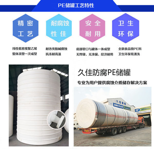 含油廢水浸入土壤孔隙間形成油膜,產(chǎn)生堵塞作用,致使空氣、水分及肥料均不能滲入土中,破壞土層結(jié)構(gòu),不利于農(nóng)作物的生長,甚至使農(nóng)作物枯死,由于其特殊化學(xué)性質(zhì),推薦使用久佳防腐牌PE含油廢水儲罐。久佳防腐的PE儲罐能很好儲存含油廢水,自主研發(fā)管口一體成型專利,創(chuàng)新管口一體成型旋轉(zhuǎn)滾塑工藝,具有防滲漏、防污染、耐各種酸堿、防腐蝕、壽命長等優(yōu)點。提高了罐體和下部管口之間的機械性能和承壓強度,優(yōu)化了產(chǎn)品結(jié)構(gòu)。