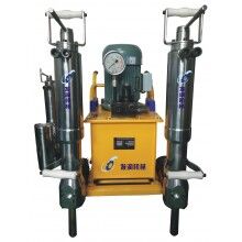 液壓劈裂機(jī)由泵站和分裂器兩大部分組成,工作時由泵站輸出的高壓油驅(qū)動油缸,產(chǎn)生巨大推力,驅(qū)動楔塊組中的中間楔塊向前伸出,將反向楔塊向兩邊撐開,即可使被分裂物體分裂。