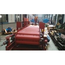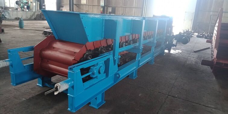 該裝置的安裝要點(diǎn)在于對(duì)鋼絲繩仲人下料口深度和彈簧拉力的調(diào)整,要以不斷料不溢料為準(zhǔn)。鋼圓盤(pán)離給料機(jī)過(guò)近,稍微有點(diǎn)料層厚度板喂機(jī)就會(huì)停止,影響正常下料;如果過(guò)高又起不到防溢料的作用。彈簧拉力過(guò)大過(guò)小也是如此。因此,調(diào)節(jié)時(shí)要反復(fù)耐心地進(jìn)行,相互配合,才能達(dá)到預(yù)期效果。